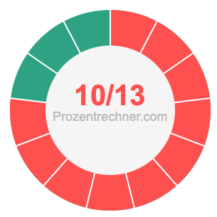 Was ist 10/13 in Prozent? Wie viel ist 10/13 in Prozent? Wie viel Prozent sind 10/13? Hier erklären und zeigen wir Ihnen, wie Sie 10/13 in Prozent berechnen und umrechnen können.