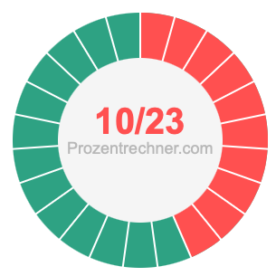 Was ist 10/23 in Prozent? Wie viel ist 10/23 in Prozent? Wie viel Prozent sind 10/23? Hier erklären und zeigen wir Ihnen, wie Sie 10/23 in Prozent berechnen und umrechnen können.