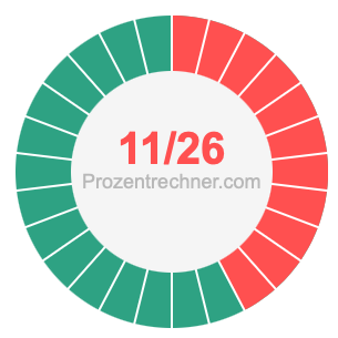 Was ist 11/26 in Prozent? Wie viel ist 11/26 in Prozent? Wie viel Prozent sind 11/26? Hier erklären und zeigen wir Ihnen, wie Sie 11/26 in Prozent berechnen und umrechnen können.