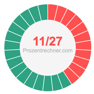 Was ist 11/27 in Prozent? Wie viel ist 11/27 in Prozent? Wie viel Prozent sind 11/27? Hier erklären und zeigen wir Ihnen, wie Sie 11/27 in Prozent berechnen und umrechnen können.