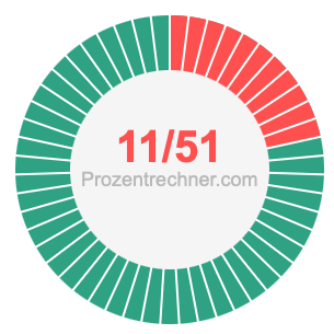 Was ist 11/51 in Prozent? Wie viel ist 11/51 in Prozent? Wie viel Prozent sind 11/51? Hier erklären und zeigen wir Ihnen, wie Sie 11/51 in Prozent berechnen und umrechnen können.