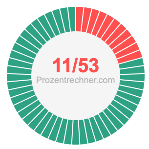 Was ist 11/53 in Prozent? Wie viel ist 11/53 in Prozent? Wie viel Prozent sind 11/53? Hier erklären und zeigen wir Ihnen, wie Sie 11/53 in Prozent berechnen und umrechnen können.