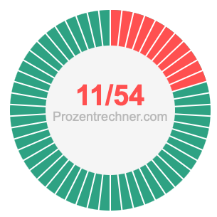Was ist 11/54 in Prozent? Wie viel ist 11/54 in Prozent? Wie viel Prozent sind 11/54? Hier erklären und zeigen wir Ihnen, wie Sie 11/54 in Prozent berechnen und umrechnen können.