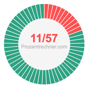 Was ist 11/57 in Prozent? Wie viel ist 11/57 in Prozent? Wie viel Prozent sind 11/57? Hier erklären und zeigen wir Ihnen, wie Sie 11/57 in Prozent berechnen und umrechnen können.