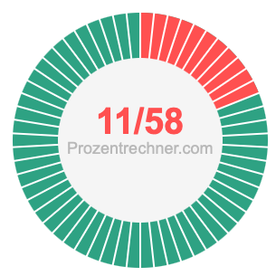Was ist 11/58 in Prozent? Wie viel ist 11/58 in Prozent? Wie viel Prozent sind 11/58? Hier erklären und zeigen wir Ihnen, wie Sie 11/58 in Prozent berechnen und umrechnen können.