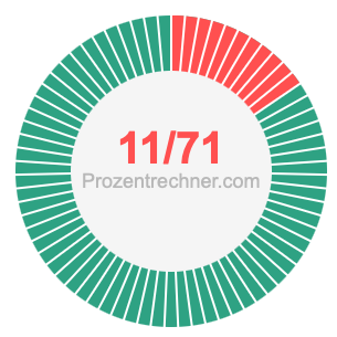 Was ist 11/71 in Prozent? Wie viel ist 11/71 in Prozent? Wie viel Prozent sind 11/71? Hier erklären und zeigen wir Ihnen, wie Sie 11/71 in Prozent berechnen und umrechnen können.