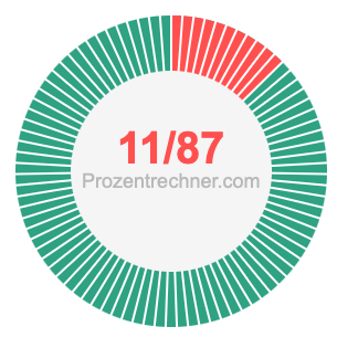 Was ist 11/87 in Prozent? Wie viel ist 11/87 in Prozent? Wie viel Prozent sind 11/87? Hier erklären und zeigen wir Ihnen, wie Sie 11/87 in Prozent berechnen und umrechnen können.