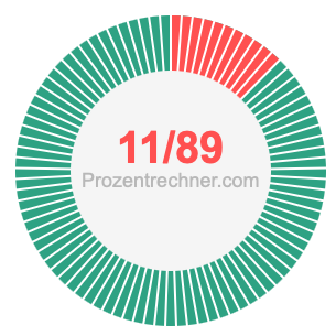 Was ist 11/89 in Prozent? Wie viel ist 11/89 in Prozent? Wie viel Prozent sind 11/89? Hier erklären und zeigen wir Ihnen, wie Sie 11/89 in Prozent berechnen und umrechnen können.
