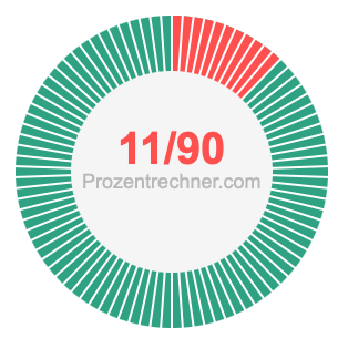 Was ist 11/90 in Prozent? Wie viel ist 11/90 in Prozent? Wie viel Prozent sind 11/90? Hier erklären und zeigen wir Ihnen, wie Sie 11/90 in Prozent berechnen und umrechnen können.