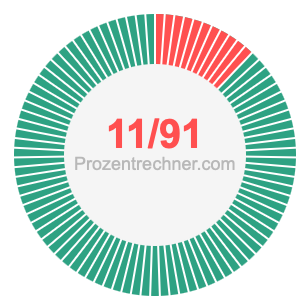 Was ist 11/91 in Prozent? Wie viel ist 11/91 in Prozent? Wie viel Prozent sind 11/91? Hier erklären und zeigen wir Ihnen, wie Sie 11/91 in Prozent berechnen und umrechnen können.