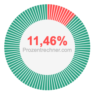 11/96 ist ein Bruch, der 11 von 96 bedeutet, und Prozent bedeutet etwas von 100. Wir können also die folgende Gleichung aufstellen, um 11/96 als Prozentzahl zu erhalten: