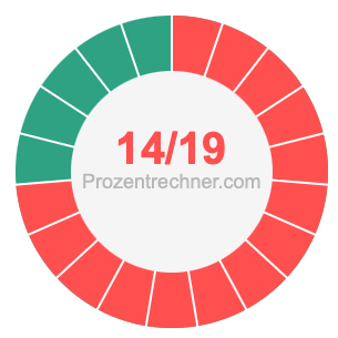Was ist 14/19 in Prozent? Wie viel ist 14/19 in Prozent? Wie viel Prozent sind 14/19? Hier erklären und zeigen wir Ihnen, wie Sie 14/19 in Prozent berechnen und umrechnen können.
