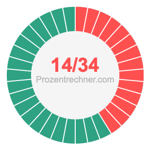 Was ist 14/34 in Prozent? Wie viel ist 14/34 in Prozent? Wie viel Prozent sind 14/34? Hier erklären und zeigen wir Ihnen, wie Sie 14/34 in Prozent berechnen und umrechnen können.