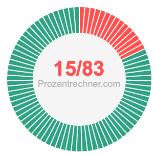 Was ist 15/83 in Prozent? Wie viel ist 15/83 in Prozent? Wie viel Prozent sind 15/83? Hier erklären und zeigen wir Ihnen, wie Sie 15/83 in Prozent berechnen und umrechnen können.