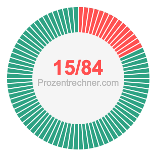 15/84 ist ein Bruch, der 15 von 84 bedeutet, und Prozent bedeutet etwas von 100. Wir können also die folgende Gleichung aufstellen, um 15/84 als Prozentzahl zu erhalten:
