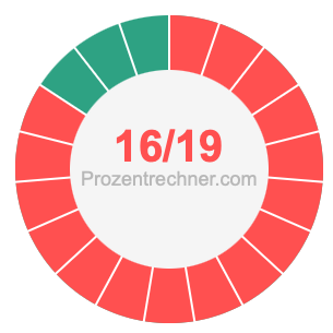 Was ist 16/19 in Prozent? Wie viel ist 16/19 in Prozent? Wie viel Prozent sind 16/19? Hier erklären und zeigen wir Ihnen, wie Sie 16/19 in Prozent berechnen und umrechnen können.