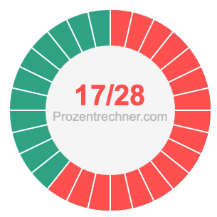 Was ist 17/28 in Prozent? Wie viel ist 17/28 in Prozent? Wie viel Prozent sind 17/28? Hier erklären und zeigen wir Ihnen, wie Sie 17/28 in Prozent berechnen und umrechnen können.