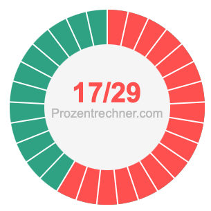 Was ist 17/29 in Prozent? Wie viel ist 17/29 in Prozent? Wie viel Prozent sind 17/29? Hier erklären und zeigen wir Ihnen, wie Sie 17/29 in Prozent berechnen und umrechnen können.