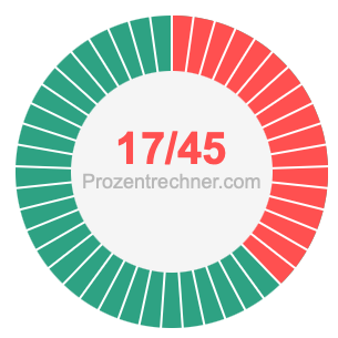 Was ist 17/45 in Prozent? Wie viel ist 17/45 in Prozent? Wie viel Prozent sind 17/45? Hier erklären und zeigen wir Ihnen, wie Sie 17/45 in Prozent berechnen und umrechnen können.