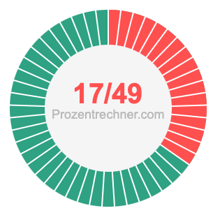 Was ist 17/49 in Prozent? Wie viel ist 17/49 in Prozent? Wie viel Prozent sind 17/49? Hier erklären und zeigen wir Ihnen, wie Sie 17/49 in Prozent berechnen und umrechnen können.