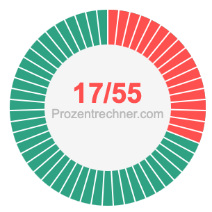 Was ist 17/55 in Prozent? Wie viel ist 17/55 in Prozent? Wie viel Prozent sind 17/55? Hier erklären und zeigen wir Ihnen, wie Sie 17/55 in Prozent berechnen und umrechnen können.