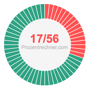 Was ist 17/56 in Prozent? Wie viel ist 17/56 in Prozent? Wie viel Prozent sind 17/56? Hier erklären und zeigen wir Ihnen, wie Sie 17/56 in Prozent berechnen und umrechnen können.