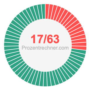 Was ist 17/63 in Prozent? Wie viel ist 17/63 in Prozent? Wie viel Prozent sind 17/63? Hier erklären und zeigen wir Ihnen, wie Sie 17/63 in Prozent berechnen und umrechnen können.