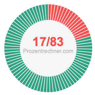 Außerdem werden wir den Bruch 17/83 in einem Kreisdiagramm und 17/83 als Prozent in einem Kreisdiagramm veranschaulichen.