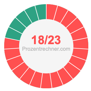 Was ist 18/23 in Prozent? Wie viel ist 18/23 in Prozent? Wie viel Prozent sind 18/23? Hier erklären und zeigen wir Ihnen, wie Sie 18/23 in Prozent berechnen und umrechnen können.