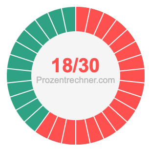 Was ist 18/30 in Prozent? Wie viel ist 18/30 in Prozent? Wie viel Prozent sind 18/30? Hier erklären und zeigen wir Ihnen, wie Sie 18/30 in Prozent berechnen und umrechnen können.