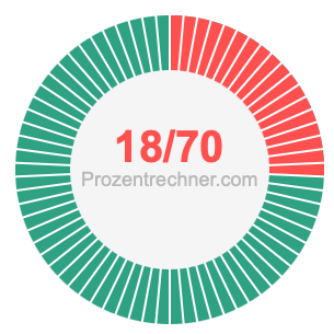 Was ist 18/70 in Prozent? Wie viel ist 18/70 in Prozent? Wie viel Prozent sind 18/70? Hier erklären und zeigen wir Ihnen, wie Sie 18/70 in Prozent berechnen und umrechnen können.