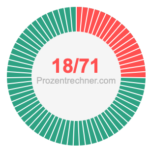 Was ist 18/71 in Prozent? Wie viel ist 18/71 in Prozent? Wie viel Prozent sind 18/71? Hier erklären und zeigen wir Ihnen, wie Sie 18/71 in Prozent berechnen und umrechnen können.