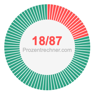 Was ist 18/87 in Prozent? Wie viel ist 18/87 in Prozent? Wie viel Prozent sind 18/87? Hier erklären und zeigen wir Ihnen, wie Sie 18/87 in Prozent berechnen und umrechnen können.