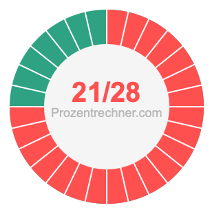 Was ist 21/28 in Prozent? Wie viel ist 21/28 in Prozent? Wie viel Prozent sind 21/28? Hier erklären und zeigen wir Ihnen, wie Sie 21/28 in Prozent berechnen und umrechnen können.