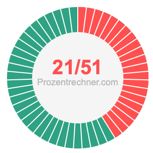 Was ist 21/51 in Prozent? Wie viel ist 21/51 in Prozent? Wie viel Prozent sind 21/51? Hier erklären und zeigen wir Ihnen, wie Sie 21/51 in Prozent berechnen und umrechnen können.