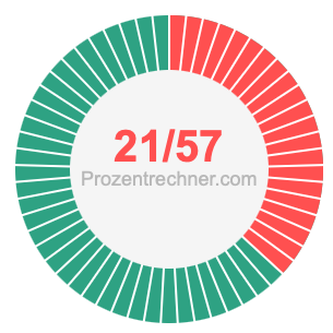 Was ist 21/57 in Prozent? Wie viel ist 21/57 in Prozent? Wie viel Prozent sind 21/57? Hier erklären und zeigen wir Ihnen, wie Sie 21/57 in Prozent berechnen und umrechnen können.