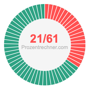 Was ist 21/61 in Prozent? Wie viel ist 21/61 in Prozent? Wie viel Prozent sind 21/61? Hier erklären und zeigen wir Ihnen, wie Sie 21/61 in Prozent berechnen und umrechnen können.