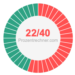 Was ist 22/40 in Prozent? Wie viel ist 22/40 in Prozent? Wie viel Prozent sind 22/40? Hier erklären und zeigen wir Ihnen, wie Sie 22/40 in Prozent berechnen und umrechnen können.