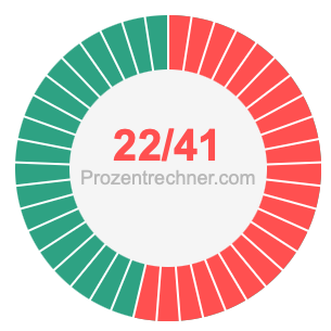 Was ist 22/41 in Prozent? Wie viel ist 22/41 in Prozent? Wie viel Prozent sind 22/41? Hier erklären und zeigen wir Ihnen, wie Sie 22/41 in Prozent berechnen und umrechnen können.