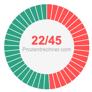 Was ist 22/45 in Prozent? Wie viel ist 22/45 in Prozent? Wie viel Prozent sind 22/45? Hier erklären und zeigen wir Ihnen, wie Sie 22/45 in Prozent berechnen und umrechnen können.