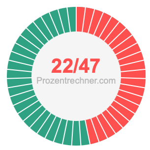 Was ist 22/47 in Prozent? Wie viel ist 22/47 in Prozent? Wie viel Prozent sind 22/47? Hier erklären und zeigen wir Ihnen, wie Sie 22/47 in Prozent berechnen und umrechnen können.