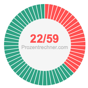 Was ist 22/59 in Prozent? Wie viel ist 22/59 in Prozent? Wie viel Prozent sind 22/59? Hier erklären und zeigen wir Ihnen, wie Sie 22/59 in Prozent berechnen und umrechnen können.