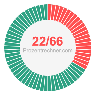 Was ist 22/66 in Prozent? Wie viel ist 22/66 in Prozent? Wie viel Prozent sind 22/66? Hier erklären und zeigen wir Ihnen, wie Sie 22/66 in Prozent berechnen und umrechnen können.