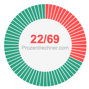 Was ist 22/69 in Prozent? Wie viel ist 22/69 in Prozent? Wie viel Prozent sind 22/69? Hier erklären und zeigen wir Ihnen, wie Sie 22/69 in Prozent berechnen und umrechnen können.