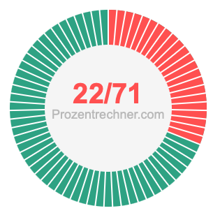 Was ist 22/71 in Prozent? Wie viel ist 22/71 in Prozent? Wie viel Prozent sind 22/71? Hier erklären und zeigen wir Ihnen, wie Sie 22/71 in Prozent berechnen und umrechnen können.