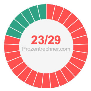 Was ist 23/29 in Prozent? Wie viel ist 23/29 in Prozent? Wie viel Prozent sind 23/29? Hier erklären und zeigen wir Ihnen, wie Sie 23/29 in Prozent berechnen und umrechnen können.