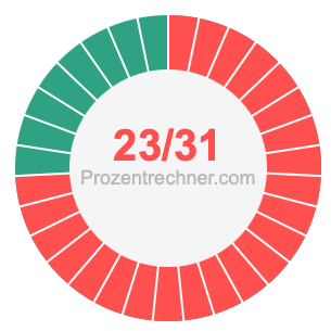 Was ist 23/31 in Prozent? Wie viel ist 23/31 in Prozent? Wie viel Prozent sind 23/31? Hier erklären und zeigen wir Ihnen, wie Sie 23/31 in Prozent berechnen und umrechnen können.