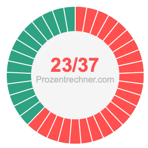 Außerdem werden wir den Bruch 23/37 in einem Kreisdiagramm und 23/37 als Prozent in einem Kreisdiagramm veranschaulichen.