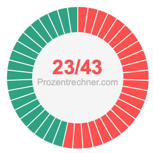 Was ist 23/43 in Prozent? Wie viel ist 23/43 in Prozent? Wie viel Prozent sind 23/43? Hier erklären und zeigen wir Ihnen, wie Sie 23/43 in Prozent berechnen und umrechnen können.