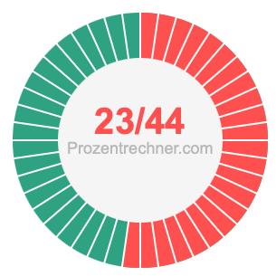 Was ist 23/44 in Prozent? Wie viel ist 23/44 in Prozent? Wie viel Prozent sind 23/44? Hier erklären und zeigen wir Ihnen, wie Sie 23/44 in Prozent berechnen und umrechnen können.